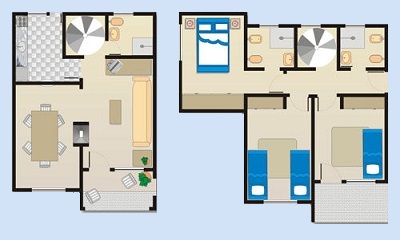 Los apartamentos son de estilo rústico, espaciosos y confortables, con aire acondicionado, cocina equipada, comedor, estar y uno, dos o tres habitaciones, con las siguientes opciones: